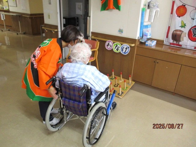 ヨーヨー釣りやわなげ、魚釣りなどの催しを準備し、患者さんに夏の雰囲気を楽しんでいただきました。