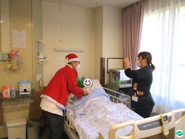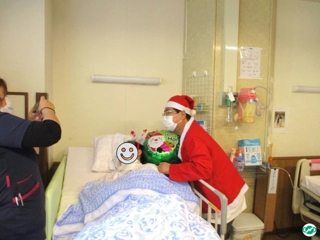 午前の部では院長がサンタクロースに扮し、病室を巡る等、患者さんと触れ合いました。